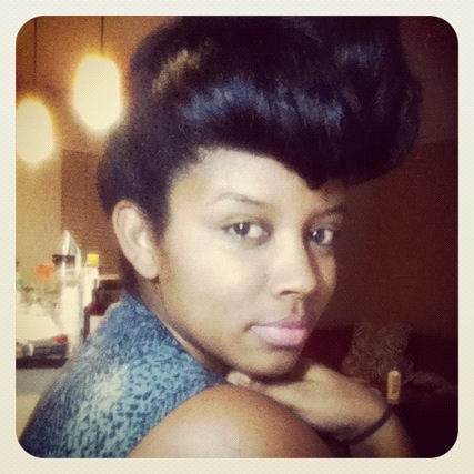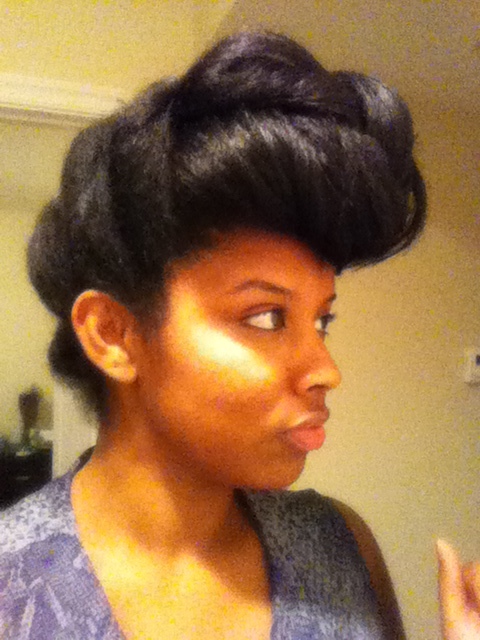 So I am experimenting with some natural hair updos to prolong my press (I’m going on two weeks strong, don’t judge me.) and came up with this top knot style. It’s inspired by Janelle Monet but also by the uber-chic headscarf top knot style I see lot’s of women rocking these days. Since I am headscarf-challenged, I used my own hair to create this dramatic look. Let me know what you think! Tutorial coming soon!